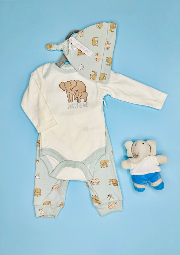 ست سه تیکه نوزادی پسرانه طرح فیل برند وارداتی
