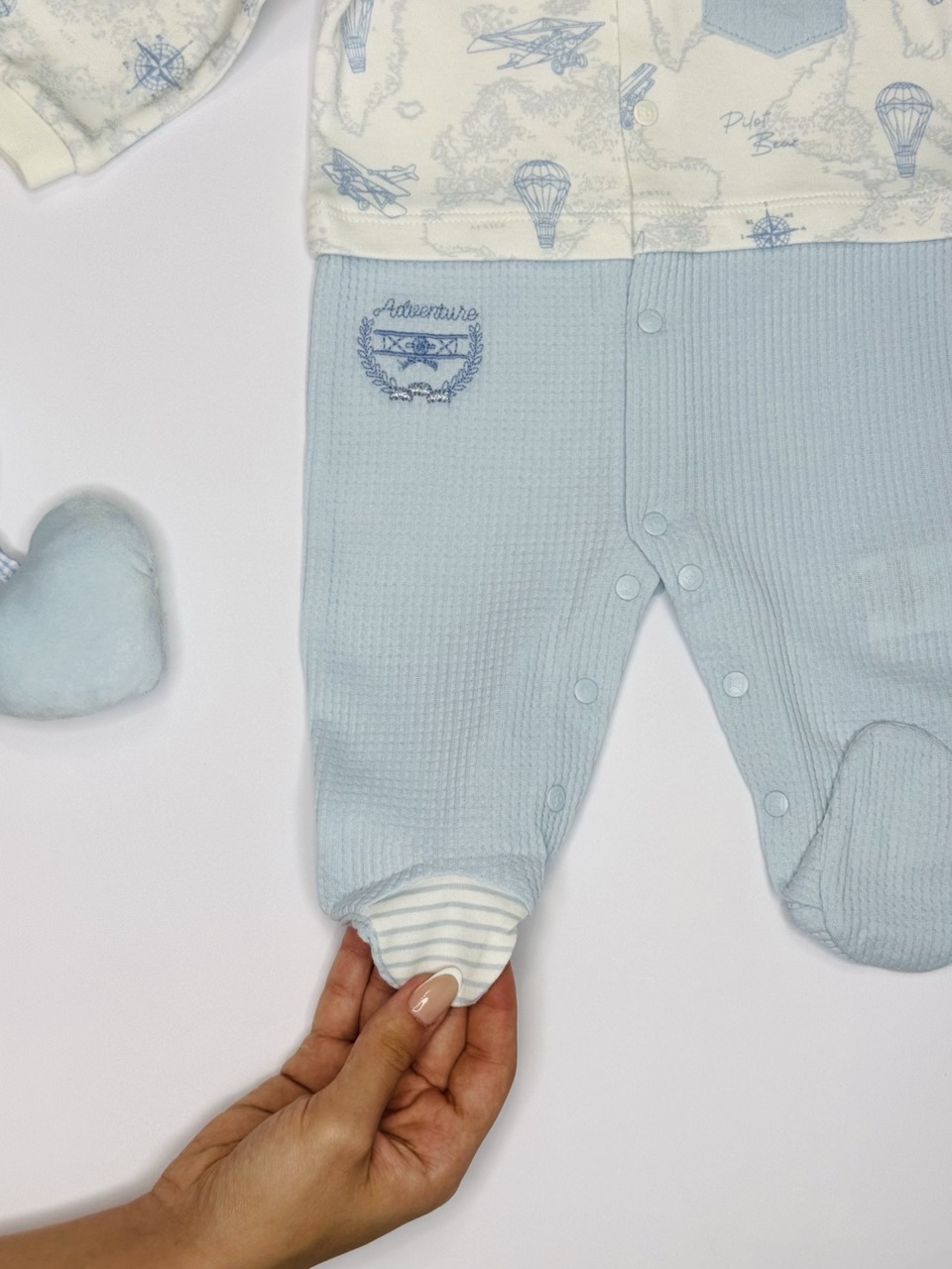 از شیک ترین سرهمی های پسرونمون که جزییات و کیفیتش باهاتون حرف میزنه 😍 جنس پارچه نخ پنبه فوق العاده نرم و لطیف،ضد حساسیت،مخصوص پوست حساس نوزاد
